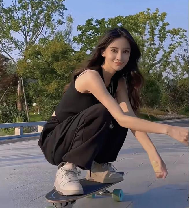 在公园里,杨颖开心地玩着滑板,脸上洋溢着灿烂的笑容,完全看不出她已经是个三十多岁的成年人了。她就像一个无忧无虑的孩子,在滑板上自由穿梭于公园的各个角落,那份随性和快乐感染了每一个看到这张照片的人。阳光洒在她的身上,给她镀上了一层温暖明媚的滤镜,让她看起来就像是从漫画里走出来的元气少女。这样的杨颖,跟我们平时在电视上看到的那个光鲜亮丽的大明星形象完全不同,反而更像是一个邻家女孩。